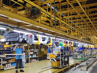 ? FDS底盤輸送線,包括升降機、空中摩擦輸送機、車身吊具、吊具維修區(qū)等設備;