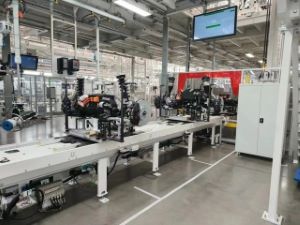 ★ 前懸分裝線(含零件轉(zhuǎn)掛EMS4套、前懸分裝托盤、EDS-前橋分裝旋轉(zhuǎn)臺、前橋預(yù)調(diào)整4套、方向機(jī)自動擰緊、半軸自動擰緊、鋼平臺)。